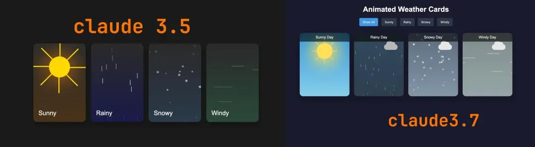同一提示词给到 Claude 3.5/3.7 后,模型生成的前端内容如下所示: