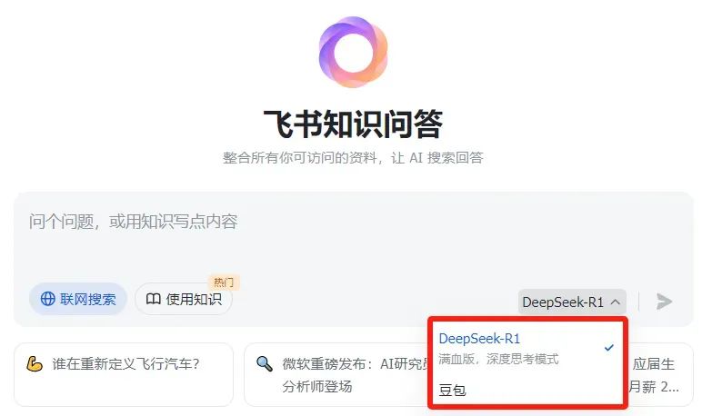 如果你选择联网搜索,AI 回答问题时,参考互联网上公开的知识回答,可以当做AI助手来用。可以方便地切换为DeepSeek或豆包。