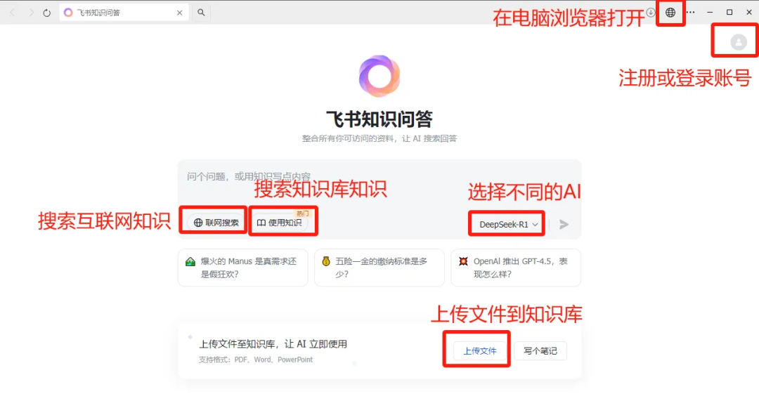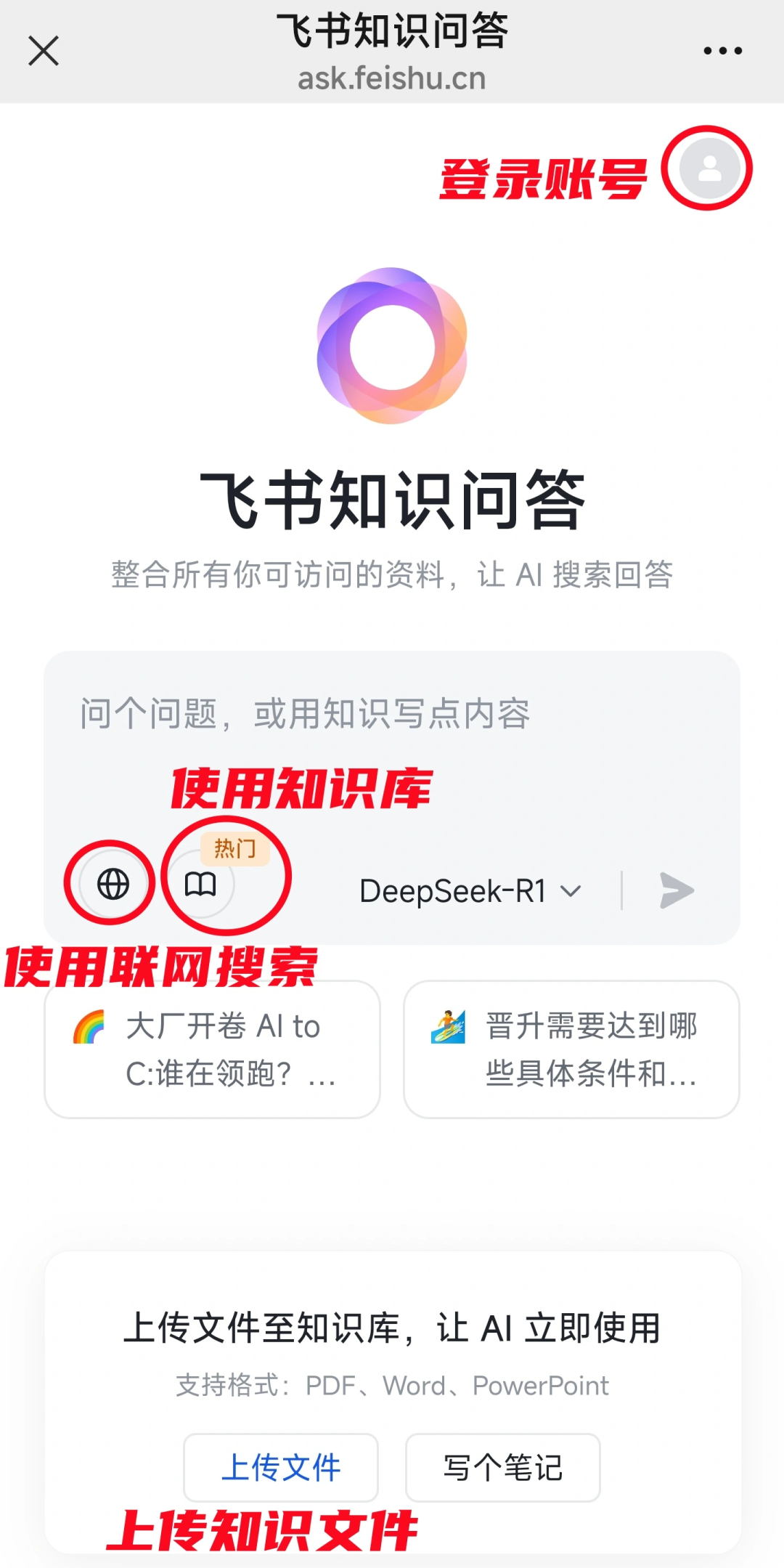 如果你打算用电脑搭建知识库。可以点击文章底部的”阅读原文“,就可以快速的体验飞书知识问答。