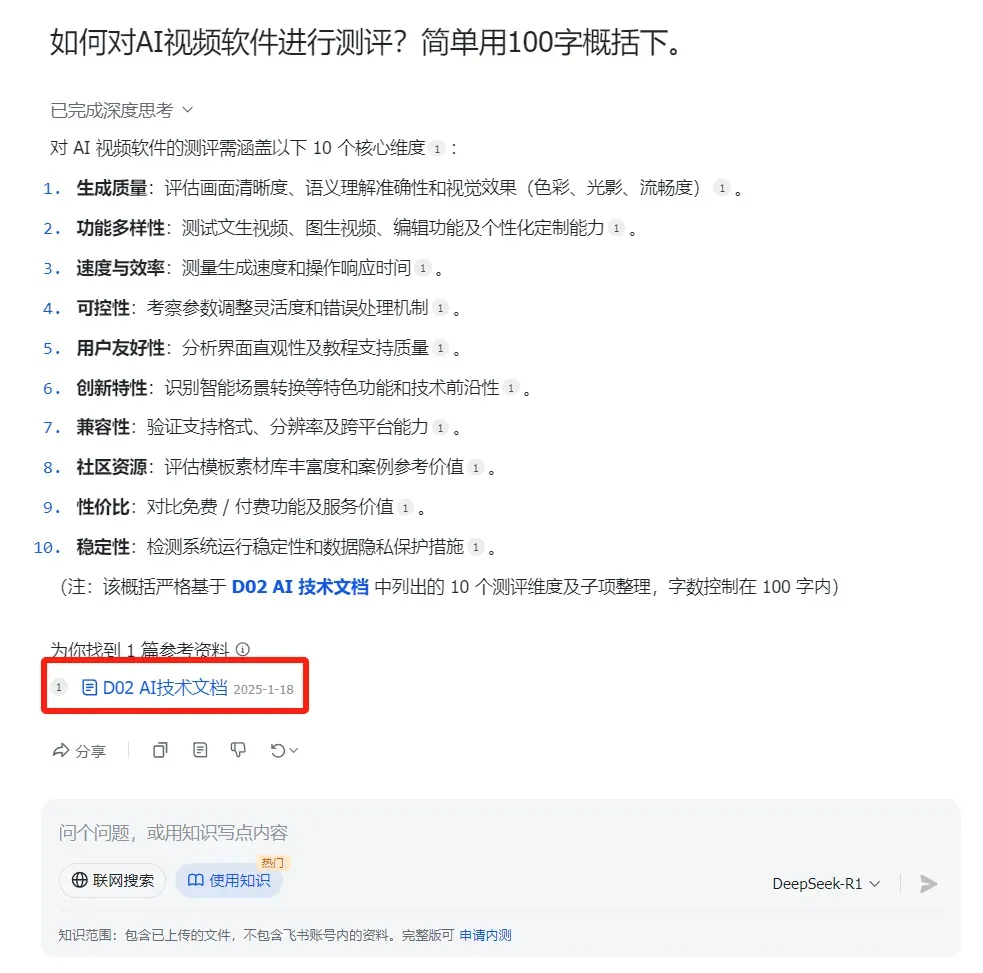 如果你选择使用知识,AI 回答问题时,参考你的个人知识库,这种回答更有针对性。